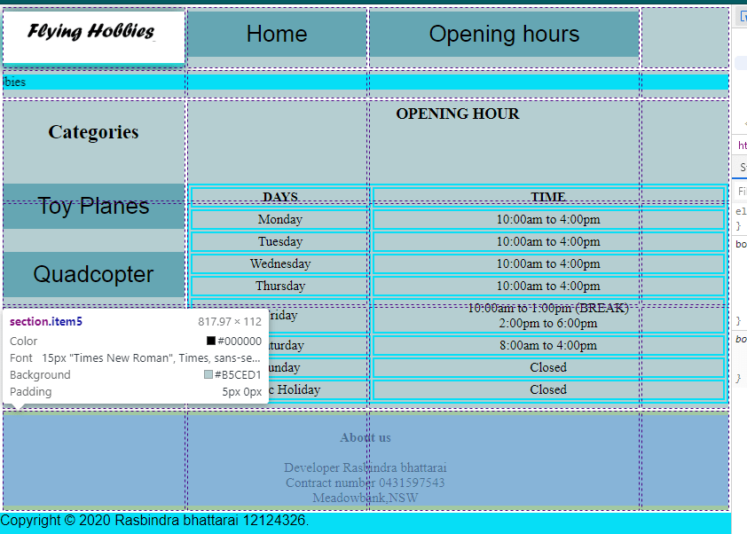 In conclusion “Flying Hobbies” site is complete with HTML and CSS code. Much research was done in order to complete this site because of which this site fulfills all the requirements. Below I will be showing all the screenshots of my site so that it will be easy to understand.