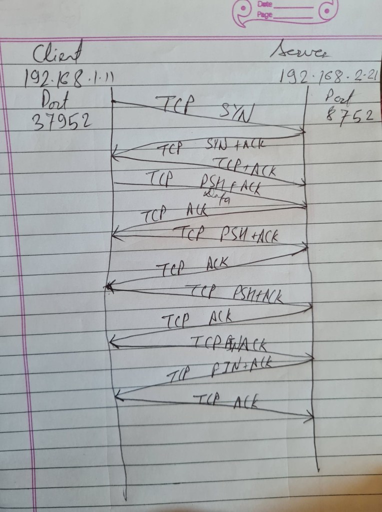 Message Sequence diagram illustrating all the TCP packets is shown below
